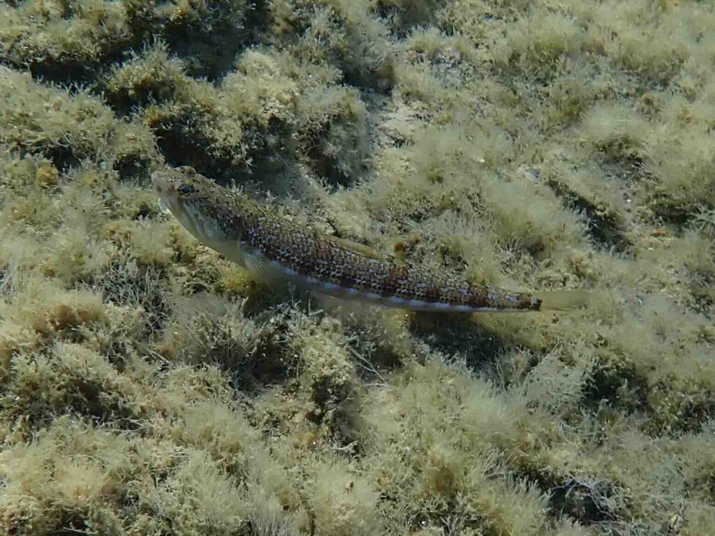 Habitat and behavior. Common fish inhabiting clear shallow sandy bottoms, usually in the vicinity of seagrass beds (depths: 3 to 90 m). It dives headfirst into the sand burying itself rapidly when frightened; it is also said to spend the night and part of the winter buried in the sand. Usually observed staying next to little piles of debris or small rocks (shelter/nest?). It uses to swim above these places, often in an oblique position.